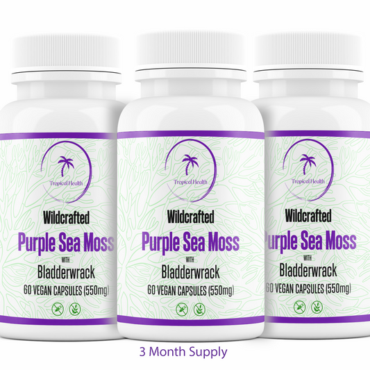 Wildcrafted Purple Sea Moss with Bladderwrack (3 Bottles - Tropical Health)